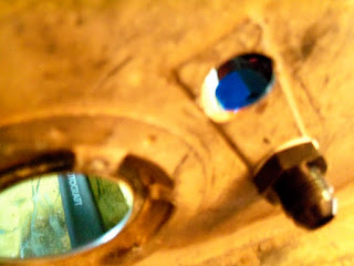 To give you an idea of what is involved in installing a bulkhead fitting and fuel pickup line in a 24o tank without cutting a port hole into the top, here's a series of shots. I did this about 8 times (2 removals and 3 installs of the feed fitting, and 1 removal and 2 installs of the return fitting) all together and my fingers were torn to bits. As in the previous fuel tank, entry you've been forewarned.