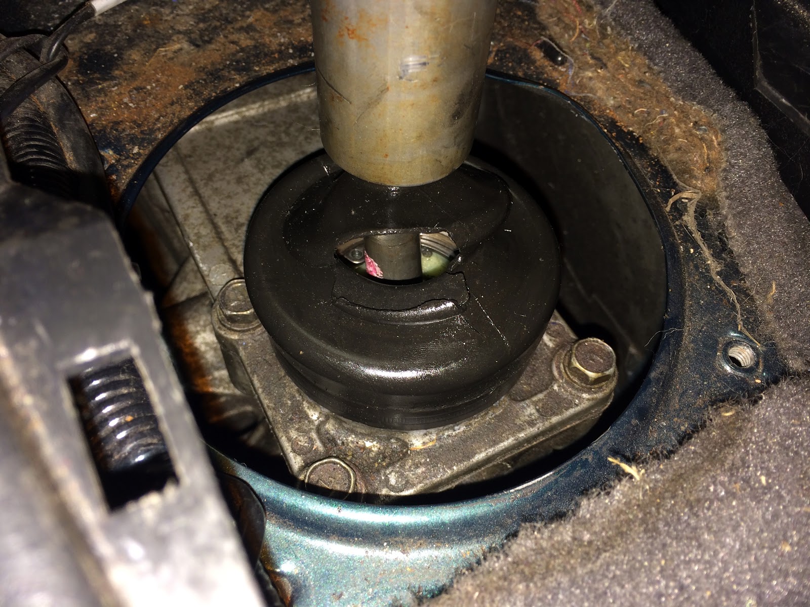 For some reason I got distracted with the shifter at this point and realized the transmission boot was torn.